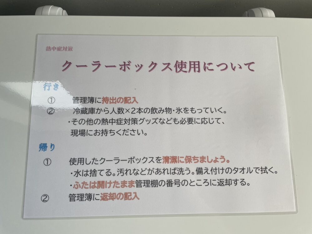 鉞組では、スタッフが安心して現場作業に取り組めるよう、冷たい飲み物を常備しています。